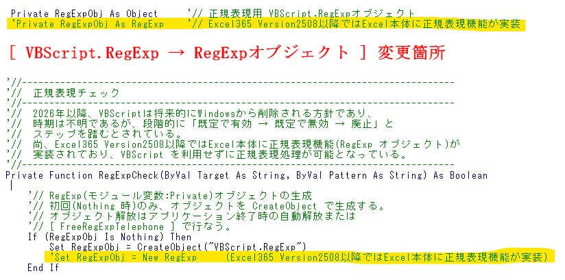 ・ ソースコード : TelephoneCheck_VBA.bas ( Ver 1.10 2025/10/19 ) 文字コード:Shift_JIS